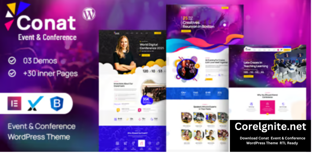 Whether you need the GPL version, the latest release, or other updates, Conat – Event & Conference WordPress Theme + RTL Ready is the ideal choice for building your event or conference website. Download it today from our platform and enhance your WordPress site.